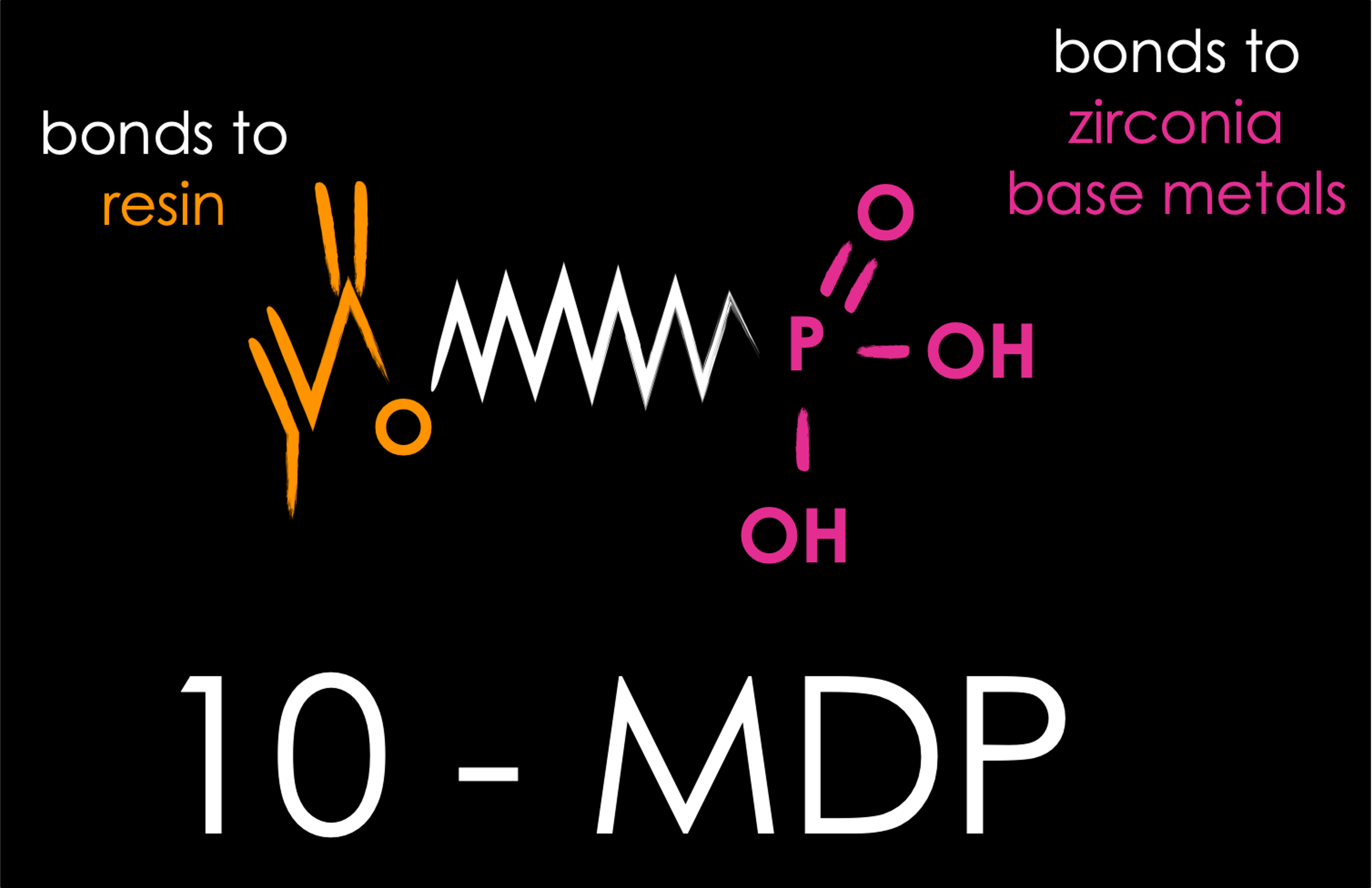 The 10-MDP molecule used to bond zirconia has a methacrylate functional group that bonds to resin cement and a phosphate-based functional group that bonds to zirconia (Figure 3). Several different chemical analyses have been performed to analyze the chemical bond between zirconia and 10-MDP.25-28